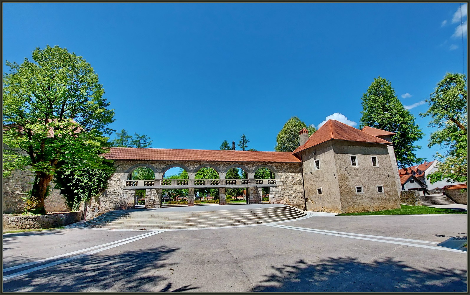Grad, ki je doživel svoje vzpone in padce, je sedaj močno pomanjšan. Med vojno je bil od zaveznikov bombardiran in po vojni so ohranili le obzidje in južni predel. Osrednjo stavbo – palacij – so podrli. V obstoječi stavbi pa je čudovit muzej suhe robe in še česa. Danes ne vstopim, ker sem bil tu že večkrat. Splača pa si ogledati razstavljeno, ker ob tem zares spoznamo suhorobarstvo, ki je pravzaprav tu doma. Kdo se ne spominja »Ribničanov«, ki so nosili na hrbtih po domovih in po sejmih mogočno krošnjo suhorobarskih izdelkov, v kateri je bilo pravzaprav vse, kar potrebujemo doma. Od lesenih žlic, igrač, valjarjev za testo, desk za rezanje, košar vseh mogočih oblik, do zobotrebcev, sit in velikih rešet (9. slika: Ribn’čan).